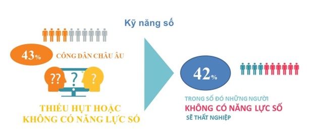 Số liệu thống kê gần đây nhất thu thập các kỹ năng kỹ thuật số ở Châu Âu trong năm 2017 cho thấy rằng 43% dân số EU không có đủ kỹ năng kỹ thuật số (không có kỹ năng hoặc trình độ thấp), 42% trong số đó sẽ thất nghiệp. Hơn nữa, trong cùng năm đó, 10% lực lượng lao động EU không có kỹ năng kỹ thuật số, chủ yếu là do họ không sử dụng Internet và 35% không có ít nhất các kỹ năng kỹ thuật số cơ bản, vốn hiện được yêu cầu trong hầu hết các công việc.