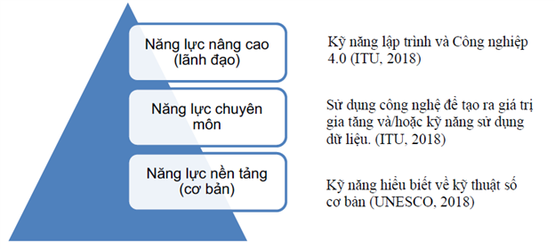 - Trong khi đó, trình độ cao cấp liên quan đến lập trình và công nghệ Công nghiệp 4.0, bao gồm các kỹ năng liên quan đến trí tuệ nhân tạo (AI), dữ liệu lớn, viết mã, an ninh mạng, Internet vạn vật (IoT). Điều đáng chú ý là các kỹ năng nâng cao thường có được thông qua giáo dục chính quy.